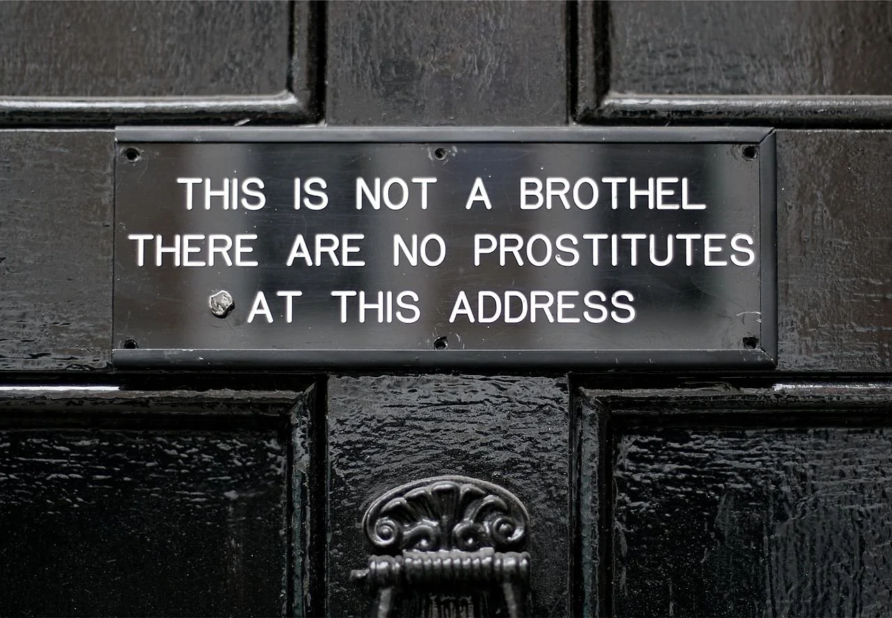 Sign at 7, Meard Street as doorways on the street were often used by scammers to trick punters out of money